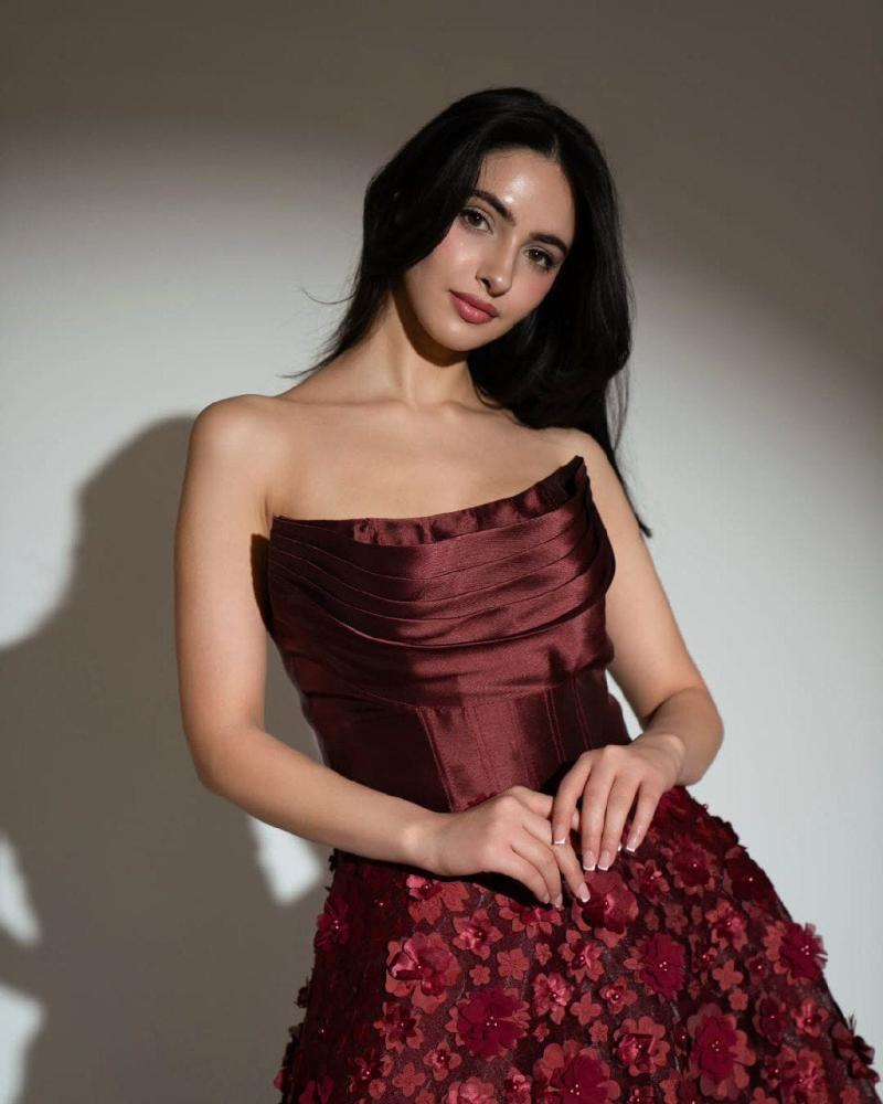 - **التصميم:** تفتة كريب فاخرة مع تطريز تل وورد أصلي